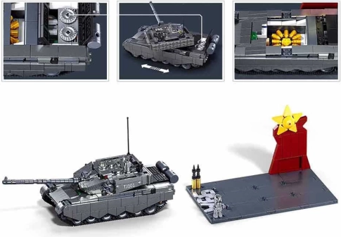 Stavebnica tanka ZTZ-99A znamke Sluban Model Bricks prinaša otrokom in zbirateljem ure zabave in učenja. S 1079 deli in 1 figurico boste zgradili podroben model v merilu 1:35, izdelan iz vzdržljive in neškodljive ABS plastike. Kocke so združljive z LEGO, COBI in Mega Bloks, figurice imajo vrteče se in nagibne dele, v paketu pa ne manjka pregleden priročnik.
