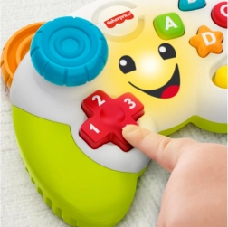 Veseli igralni upravljalnik od Fisher-Price ponuja realistično zasnovo z gibljivim joystickom in gumbi ABCD. Vsak pritisk aktivira interaktivne elemente, kot so lučke, glasba in zvoki, ki jih otroci obožujejo. Upravljalnik prav tako ponuja dva igralna načina, zabavne praktične aktivnosti in čudovite pesmi. Jezike si lahko nastavite po potrebi – poljščina, madžarščina, češčina, slovenščina ali angleščina.