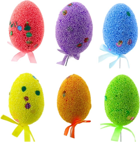 Zahvaljujoč elastični žički jih preprosto zapičite v cvetje, travne bilke, mahovite aranžmaje, velikonočne košare in sredinske dekoracije na mizi. Lahkoten material (stiropor) dobro drži obliko, barve so izrazite in primerne za spomladansko podobo doma, pisarne in vrtnih dekoracij.