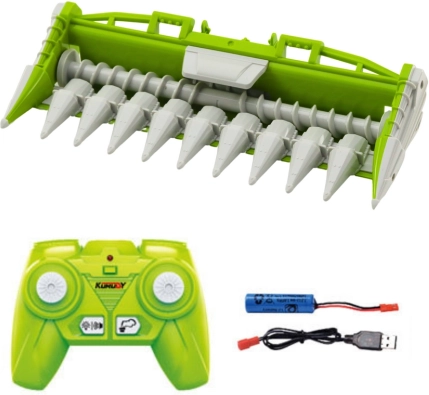 Velik RC kombajn s koruznim adapterjem prinaša realistično zabavo za male ljubitelje kmetijstva. Zahvaljujoč natančni izdelavi, krmiljeni zadnji osi, pogonjeni prednji osi in odstranljivemu koruznemu hederju otroci zlahka posnemajo pravo žetev. Gladko upravljanje na frekvenci 2,4 GHz, svetlobni in zvočni učinki ter gumijasta kolesa zagotavljajo zabavno in stabilno vožnjo doma in na prostem.
