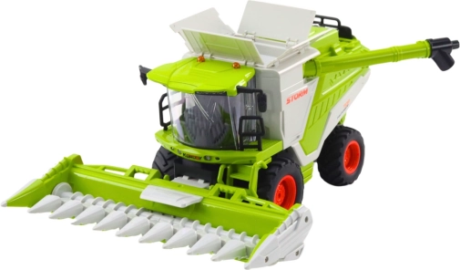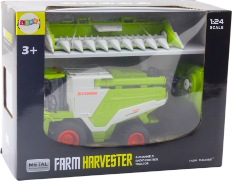 - RC kombajn s koruznim hederjem, daljinski upravljalnik, akumulator 3,7 V 500 mAh, USB polnilec, izsipna cev, posodica za vodo za dimni učinek, originalna embalaža