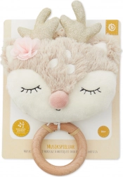 Košutka Ella znamke Bieco je nežna viseča glasbena igrača, zasnovana za pomiritev in prijetno uspavanje. Ko povlečete za eleganten leseni obroček, zazveni klasična Brahmsova uspavanka, ki ustvari občutek varnosti in ugodja.