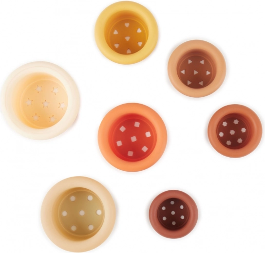 Set silikonskih zložljivih lončkov Bieco v prijetnih zemeljskih tonih ponuja neskončne možnosti igre doma in na prostem. Otroci lahko gradijo stolpe, pretakajo vodo ali se igrajo v pesku – varen in trpežen material zlahka prenese vsakodnevne pustolovščine ter se enostavno čisti z vodo in blagim milom.