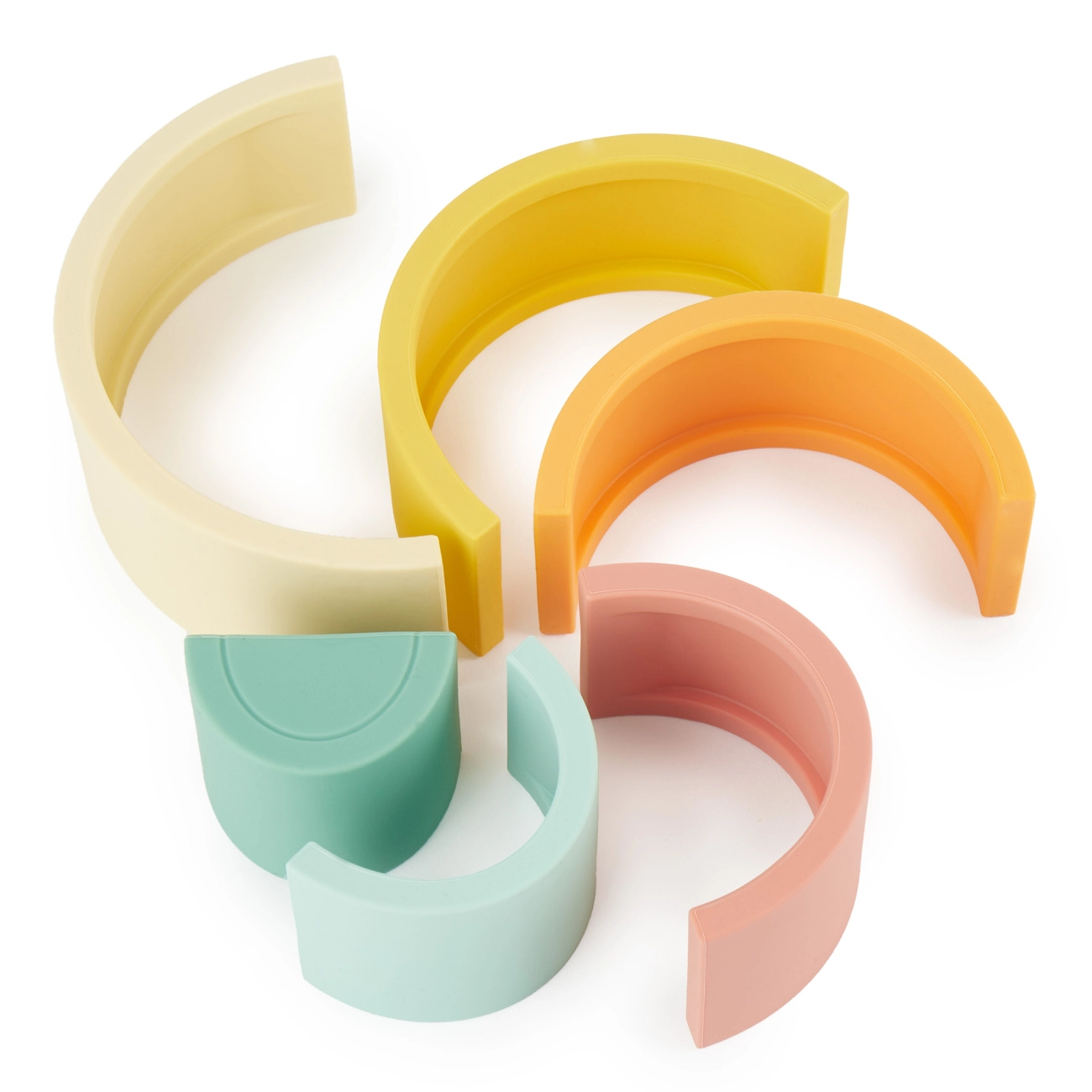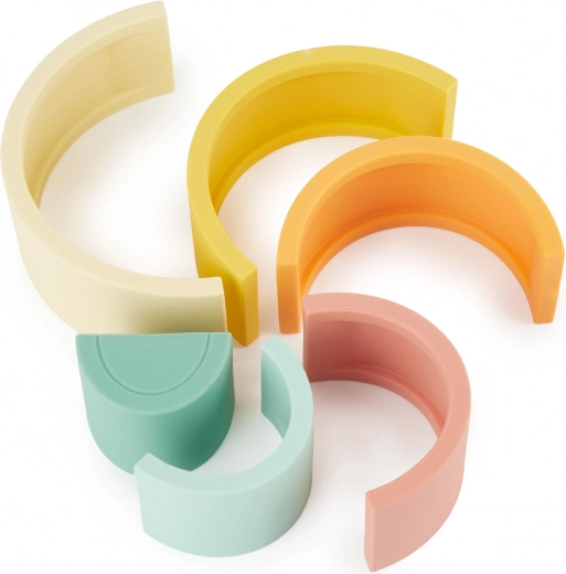 Silikonska zložljiva mavrica BIECO Tropical Vibes prinaša otrokom kreativno in varno igro. Mehak, a čvrst material iz 100 % silikona je prijeten na dotik, trpežen in enostaven za vzdrževanje – zadostujeta voda in blago milo. Pastelne barve vabijo k zlaganju, razvrščanju in ravnotežnim dejavnostim.