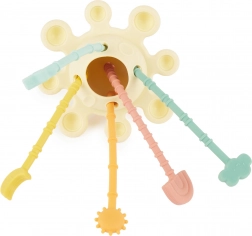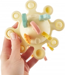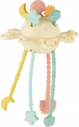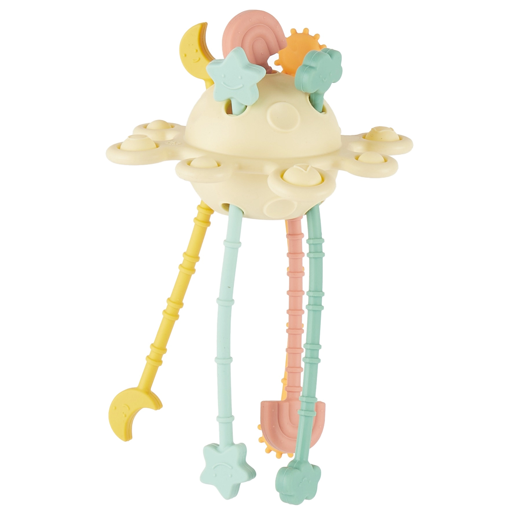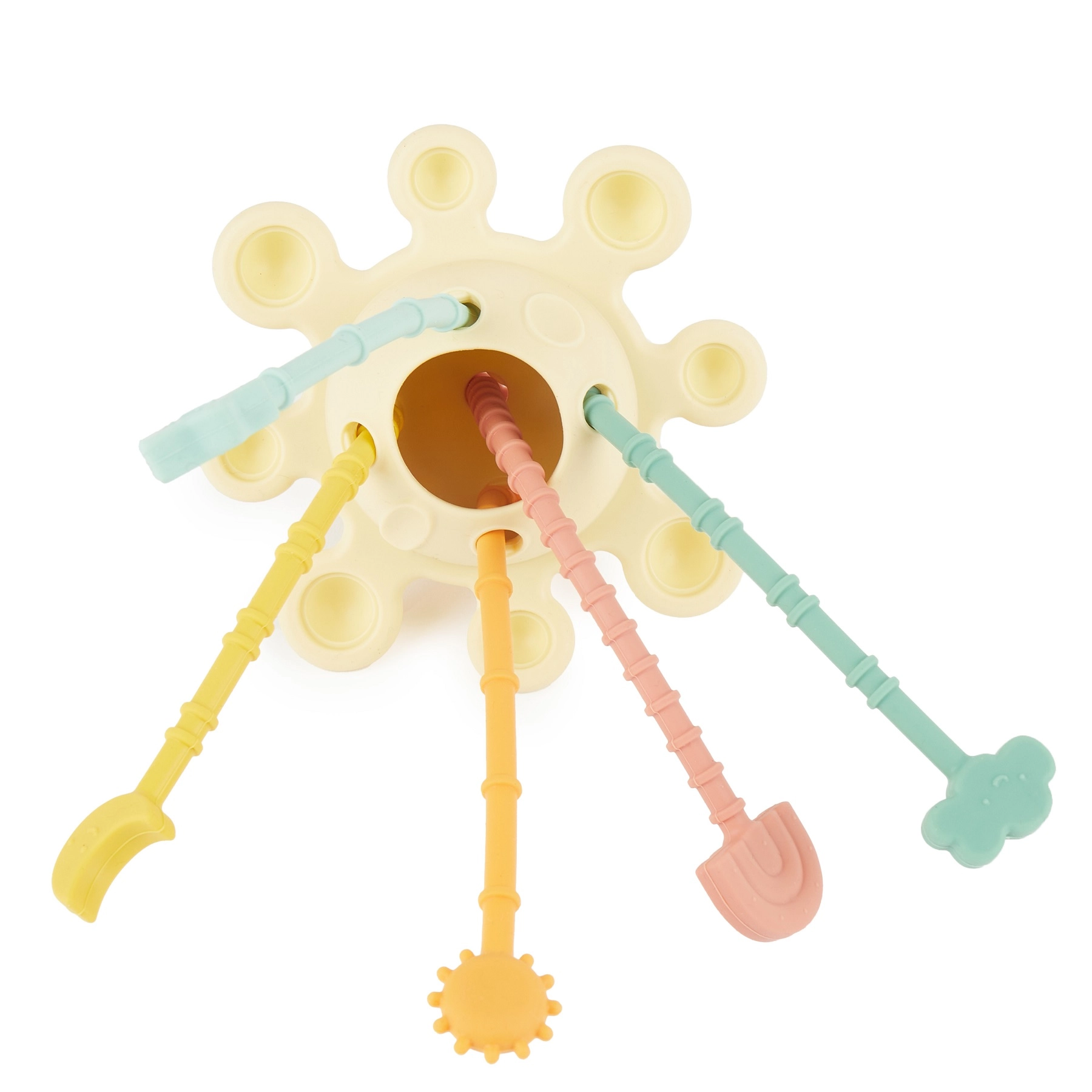 Ta silikonska motorična igrača je zasnovana po načelih montessori in otrokom pomaga naravno razvijati veščine skozi igro. Trpežne vlečne vrvice je mogoče vleči naprej in nazaj, pritiskalni elementi krepijo mišice prstov, raznolike teksture pa stimulirajo dotik in radovednost.