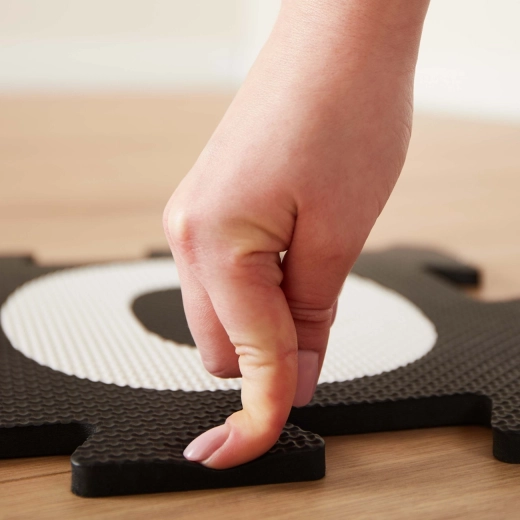 Slogovna in varna penasta podloga z abecedo v črno‑belem dizajnu otrokom ustvari mehko in zaščiteno mesto za igro. Posamezni koščki s črkami spodbujajo ustvarjalnost in učenje, enostavno se sestavljajo in prenašajo, podloga pa je odlična za otroško sobo ali dnevni prostor. Izdelano iz netoksične EVA pene za preprosto vzdrževanje in vsakodnevno uporabo.
