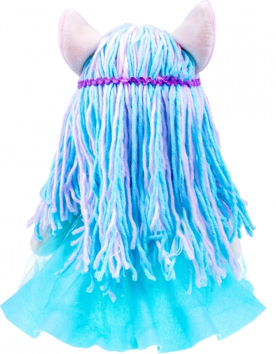 Bleščičast življenik/top in lahkotno tilasto krilce podarjata punčki eleganten videz, medtem ko varno izvezene oči in mehki materiali zagotavljajo udobno in varno cartanje. Odlično darilo za ljubitelje samorogov in čarobnih zgodb.
