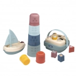 Doživite zabavo z igralnim setom 3 v 1 Little Smoby, ki vključuje stolp, vstavljanje oblik in jadrnico, idealno za igro doma in v kadi.