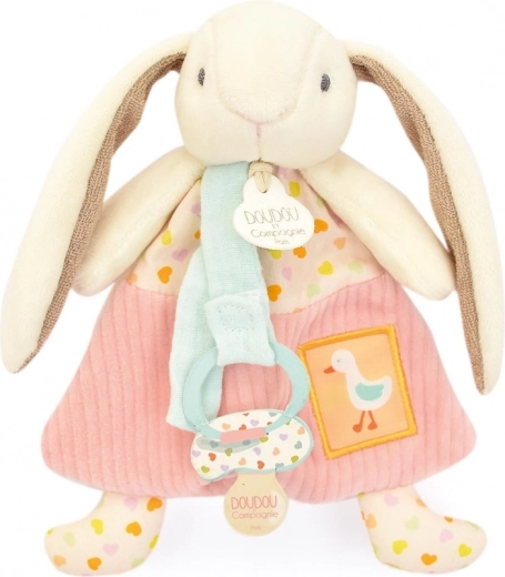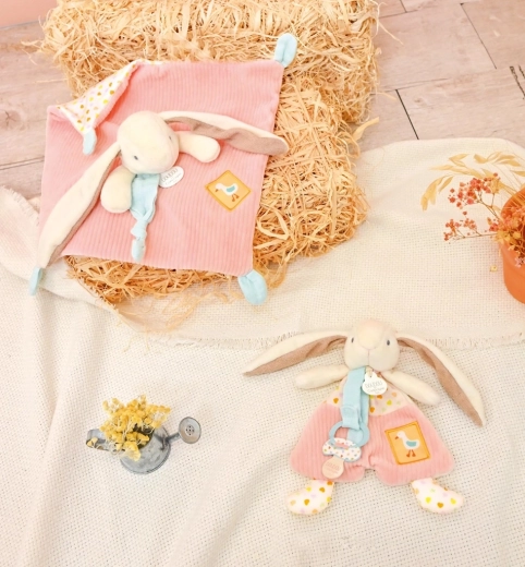 Zajček Ciboulette iz kolekcije »Moj vrt« je popoln spremljevalec za vašega malčka. Izdelan je iz vrhunskih materialov in izpolnjuje evropske standarde CE, kar zagotavlja visoko kakovost in varnost. Zaradi *integriranega držala za dudo* in mehke teksture na notranji strani ušes je igrača idealna za stiskanje in pomiritev otroka.