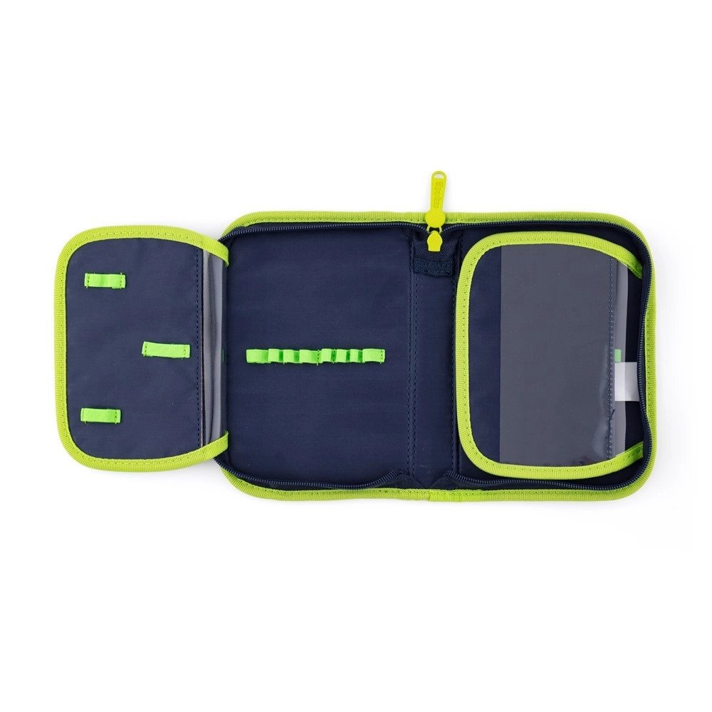 Praktična notranja razdelitev olajša organizacijo učbenikov, zvezkov in škatel za malico. Ne manjkajo stranska žepa – eden na zadrgo in drugi odprt za steklenico – ter pametni hakeljci za pritrditev dolgih naramnic. Komplet dopolnjujeta vrečka za športno opremo z zategovanjem na vrvici in enonadstropna peresnica z dvema preklopoma, elastičnimi zankami ter prozorno folijo za urnik.