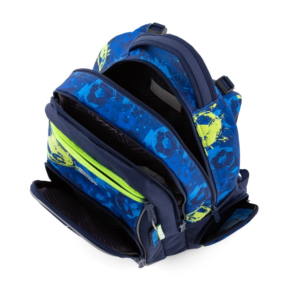 Šolski nahrbtnik OXY GO FOOTBALL združuje moderen dizajn in funkcionalnost. Zahvaljujoč anatomsko oblikovanemu, zračnemu hrbtišču ter podloženim, nastavljivim naramnicam je udoben tudi pri polni obremenitvi. Čvrsto, nepremočljivo dno ščiti vsebino pred umazanijo in vlago, odsevni elementi pa povečajo varnost na poti v šolo.