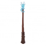 Prosojna figurica jelena se po namestitvi na palico osvetli in ustvari ikonično urok Expecto Patronum. Lahko jo kadarkoli snamete in znova namestite.