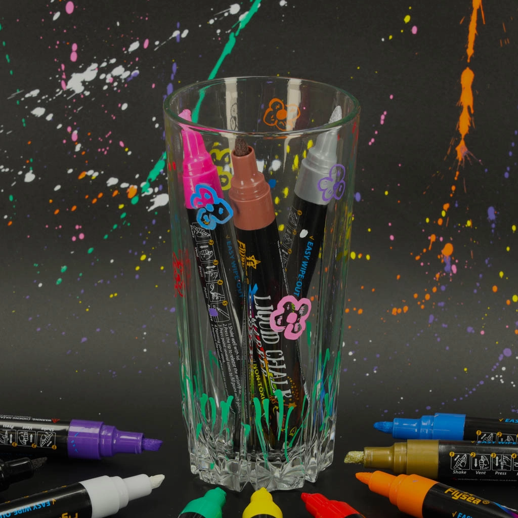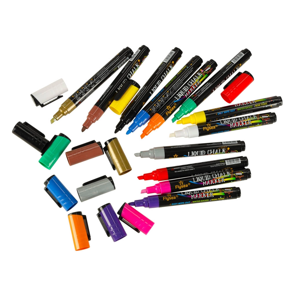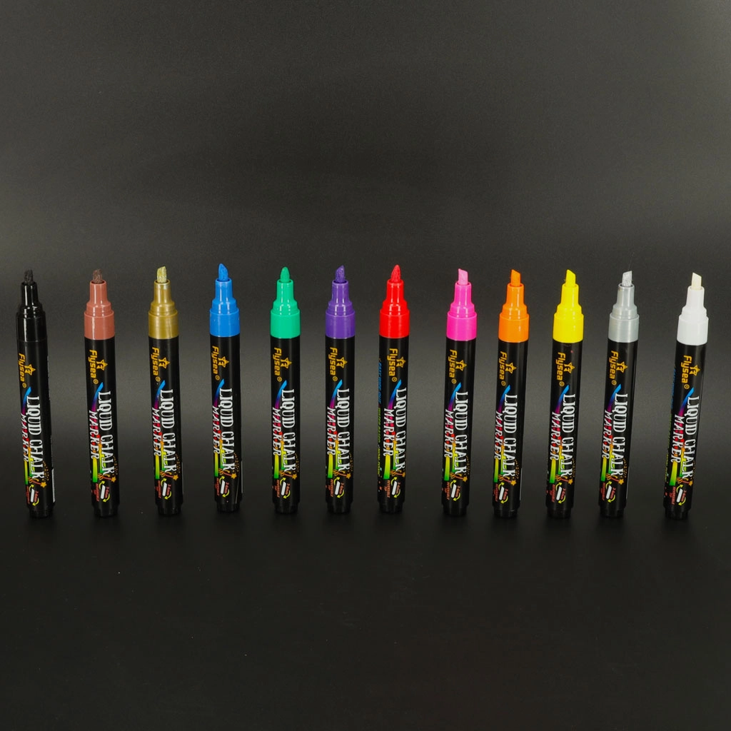 Dodajte barve svojim idejam z našim kompletom 12 barvnih krednih markerjev! Komplet vsebuje 12 živahnih odtenkov, ki izstopajo pri ustvarjanju napisov, ilustracij in dekoracij. Idealni za okraševanje izložb, ogledal, suhomaznih tabel, keramičnih skodelic in drugih gladkih površin.