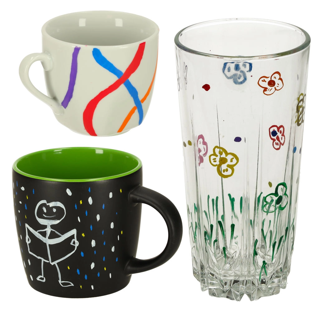 - Kreda in vodna osnova – enostavno odstranljivi z vlažno krpo, brez puščanja lis ali nečistoč.