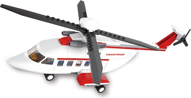 Sestavljanka Sluban Letališče – osebni helikopter z 259 kosi in 3 figuricami. Združljivo z LEGO, srednja zahtevnost, za otroke od 6 let. Odlična zabava!