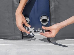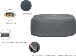 Trpežen material DuraPlus je zasnovan za dolgotrajno zunanjo uporabo – je vodoodporen, dimenzijsko stabilen in enostaven za vzdrževanje. Praktična zadrga omogoča priklop vgrajene ali zunanje črpalke brez potrebe po snemanju pokrova, zato je vzdrževanje udobno in hitro.