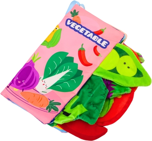 Mehka tekstilna knjižica za dojenčke – zelenjava, šumeča in piskajoča