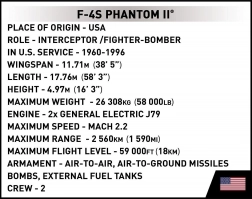 Legendarni F-4S Phantom II v temni izvedbi »Black Bunny« iz slovite preskusne eskadrilje ameriške mornarice VX-4 se vrača v obliki natančnega konstrukcijskega seta COBI. Model v merilu 1:48 prepriča z realističnimi oblikami, podrobnimi potiski in funkcionalnimi elementi, zato je odličen tako za igro kot razstavljanje.