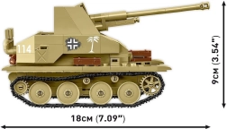Ta dovršen model Sd.Kfz. 139 Marder III temelji na podvozju Panzer 38(t) in bo navdušil ljubitelje zgodovine in gradbenih kompletov. Zahvaljujoč natančni izdelavi v merilu 1:35 in trajnim potiskom brez nalepk dobite realističen videz in odpornost pri igri. Ne manjkajo funkcionalne gosenice, vrtljiva kolesa, prostor za figurico v bojnem prostoru in premično topništvo, kar še poveča užitek pri gradnji in razstavljanju.