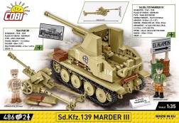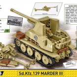 Komplet Sd.Kfz. Marder III v merilu 1:35 prinaša avtentičen model legendarnega lovca tankov iz druge svetovne vojne. V paketu najdete 486 kosov, 2 figurici, funkcionalne elemente, kot so premikajoče se gosenice, vrtljiva kolesa in nastavljiv top, poleg tega še poljsko topništvo 5 cm Pak 38 in smernik EL ALAMEIN. Vse z trajnim potiskom brez nalepk in združljivo z drugimi znamkami.