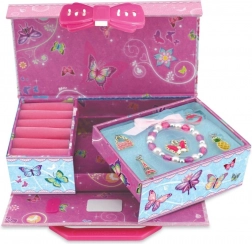 V kompletu je začetni set nakita – zapestnica in pet charms obeskov, ki jih je mogoče poljubno kombinirati in ustvariti edinstven slog. Motiv metuljčkov škatlici doda nežen, igriv videz.