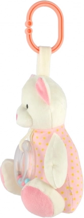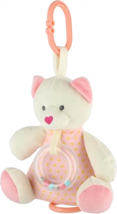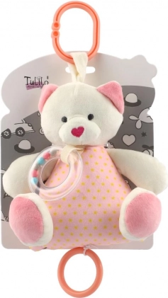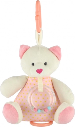 Ljubek glasbeni plišasti medvedek v velikosti 18 cm v nežni rožnati barvi ponuja pomirjujoč zvok, mehke materiale in varno izvedbo brez ostrih robov. Odličen spremljevalec v posteljici ali vozičku, ki pomaga otrokom lažje zaspati ter razvijati zaznavanje zahvaljujoč nežnim teksturam in tihim ropotuljicam.