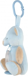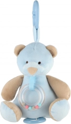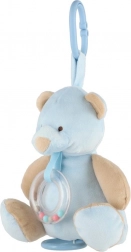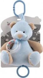 Ta mehak plišasti medvedek v nežno modri barvi je idealen spremljevalec za novorojenčke in dojenčke. Z obesnim sponkom ga preprosto pritrdite na voziček, avtosedež ali posteljico, zato bo vašega malčka spremljal povsod. Prosojni rožljajoči obroček z barvnimi bunkicami zagotavlja nežno zvočno stimulacijo, ki otroke pritegne in pomiri.