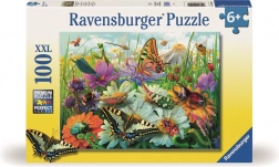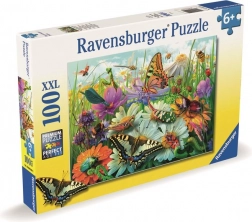 Sestavljanka vsebuje podrobne ilustracije različnih vrst žuželk, obkroženih s pisanimi cvetlicami, kar ustvarja čudovit pogled na biotsko raznovrstnost.