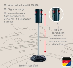 Otroški semafor BIG je popolno orodje za učenje najmlajših o osnovah cestnega prometa. Zahvaljujoč realistično menjavi svetlob in licenciranim likom Ampelmännchen & Ampelfrau znamke AMPELMANN, se lahko otroci od 3. leta varno igrajo in učijo o prometu.