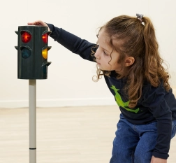 Semafor ponuja tri svetlobe, ki delujejo kot v resničnem prometu: rdeča, rumena in zelena.