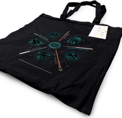 Pokažite svojo ljubezen do sveta Harryja Potterja s to praktično platneno torbo z motivom palic. Zaradi čvrstega materiala je primerna za nakupe, šolo in delo, hkrati pa jo lahko enostavno zložite v torbico ali nahrbtnik.