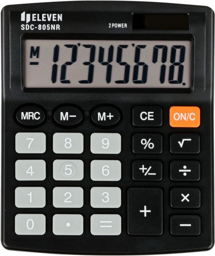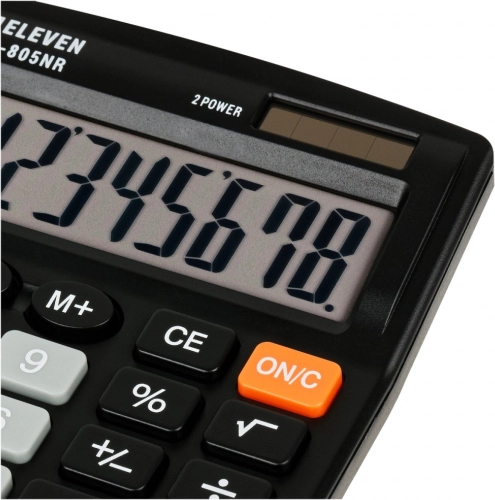 ELEVEN SDC805NR - črn kalkulator za pisarniške in študijske namene. Učinkovit, natančen in kompakten.