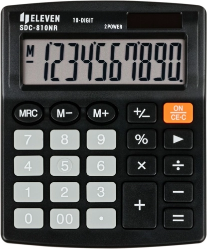 Kalkulator ELEVEN SDC-810NR je zasnovan z mislijo na potrebe profesionalnih pisarn. Ponuja jasen desetmestni zaslon, ki olajša branje rezultatov. S sončnim napajanjem in baterijskim rezervnim virom ste lahko mirni, da vas ne bo razočaral niti pri dolgotrajnih računskih nalogah.