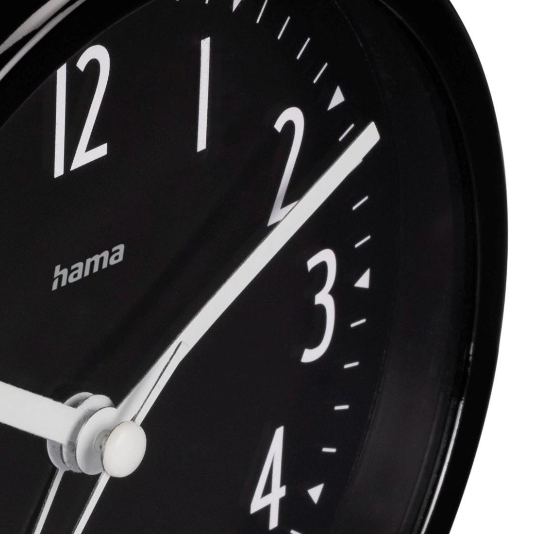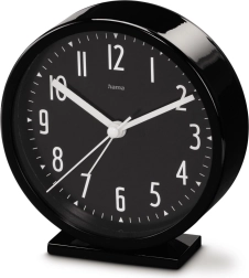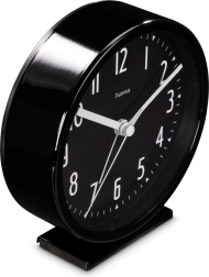 Hama Skye je stilska analogna budilka s črnim, lahko berljivim številčnikom in velikimi belimi številkami, ki se odlično poda tako v moderne kot klasične interierje. Tih mehanizem s tekočo sekundno kazalko odpravlja moteče tiktakanje in zagotavlja neprekinjen spanec.