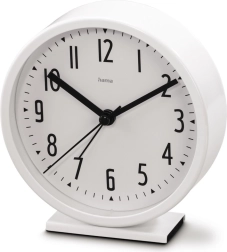Slogovna namizna budilka Hama Skye zagotavlja natančno bujenje in miren spanec zahvaljujoč tihemu, tekočemu delovanju. Ima analogen številčnik z velikimi črnimi številkami za enostavno branje časa, preprosto nastavitev enega alarma in elegantno belo izvedbo, primerno za vsako spalnico.
