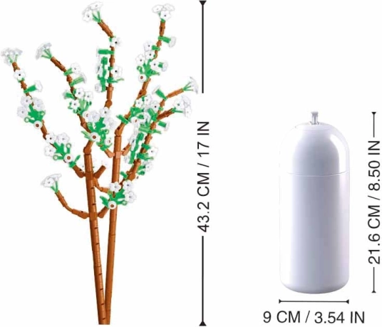 Spremenite prosti čas v kreativno sprostitev. Po sestavljanju dobite impresivno rožo z nežnimi belimi cvetovi v vitki vazi – brezčasno dekoracijo za dnevno sobo, delovno sobo ali spalnico. Zahvaljujoč trdnim spojem in kakovostnim delom iz ABS plastika boste uživali v brezskrbnem sestavljanju in dolgotrajnem razstavljanju.