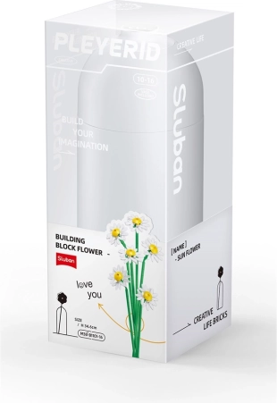 Elegantni gradbeni komplet Sluban iz serije Flowers prinaša čudovite marjetice v vazi, ki nikoli ne ovenijo. Set ponuja 221 kosov, je kompatibilen z LEGO, COBI in MEGA BLOKS ter razveseli kot darilo in stilna dekoracija za interier. Izdelano iz kakovostne in neškodljive ABS plastike, s priloženim navodilom za sestavljanje.