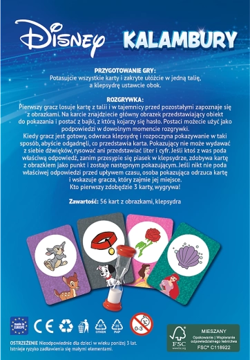 Vstopite v svet DISNEY in doživite klasične kalambure v čarobni izvedbi. Igra je odlična za otroke in odrasle, spodbuja domišljijo in timsko sodelovanje ter prinaša veliko smeha pri prikazovanju in risanju namigov.