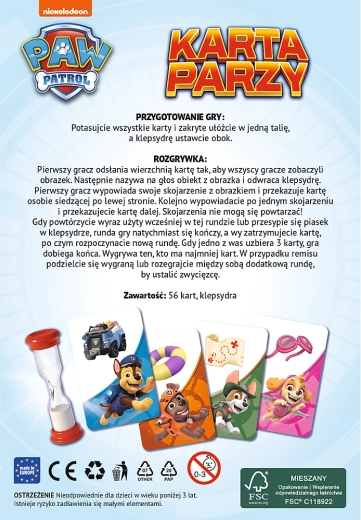 Hitra in zabavna kartečna igra z junaki iz serije PSI PATROL, kjer odločata hitro povezovanje in kreativnost. Bliskovito si izmislite povezavo s sliko, podajte karto naprej in je ne zadržite v roki – saj karta peče!