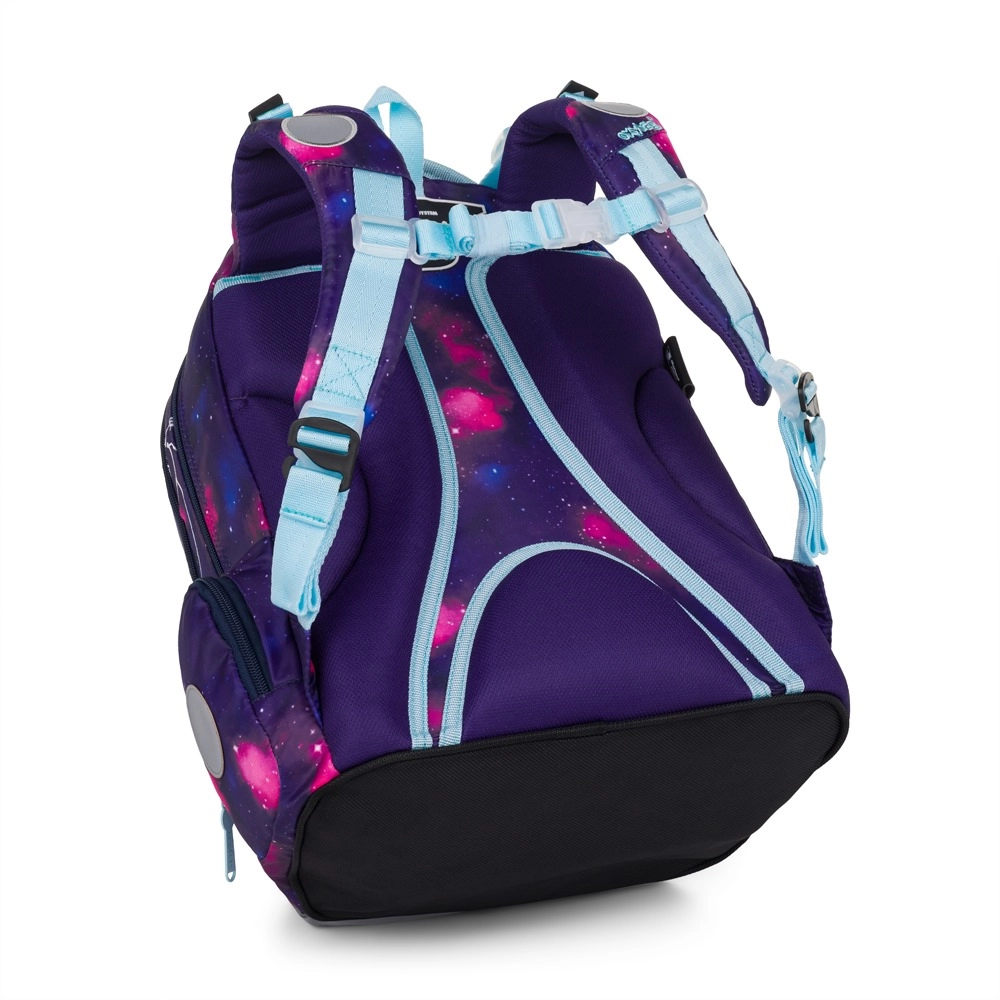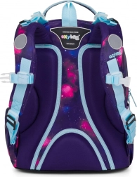 Šolski nahrbtnik OXY GO Unicorn v privlačnem »galaxy« dizajnu združuje ergonomijo, varnost in praktično razporeditev. Anatomsko oblikovano, zračno hrbtišče in nastavljive naramnice zagotavljajo udobno nošenje skozi ves dan. Čvrsto, vodoodporno dno varuje vsebino pred vlago in umazanijo.