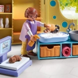 PLAYMOBIL hiša za mladičke otrokom prinaša svet nežne nege in zabave. Naj mali skrbniki spoznajo vsakodnevno rutino z mladički: umijejo jih v kotičku za umivanje, nahranijo iz posod, stehtajo in jih položijo v mehke ležalne košare. Zahvaljujoč dvojnemu povodcu se odpravijo na vesele sprehode z dvema kužkoma hkrati.