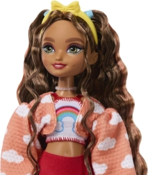 Punčka Barbie Dream Besties Teresa obožuje kotalkanje in prinaša svež, barvit slog, navdihnjen z oblački. Zahvaljujoč gibljivim sklepom zlahka zavzame dinamične poze in spodbuja otroke k pripovedovanju lastnih zgodb. Outfit sestavljajo crop top z mavrico, mehak kardigan z oblački, rdeče plisirano krilo in rdeče štirikolesne kotalkе s ščitniki za kolena.