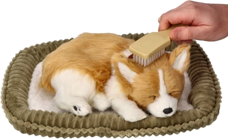 Ljubko in realistično dihajoče mladičko CORGI bo razveselilo otroke in odrasle. Deluje kot pravi speči kužek, nežno »diha« in leži na mehkem ležišču. Odlično kot pomirjujoč spremljevalec, dekoracija za otroško sobo in darilo za ljubitelje psov.