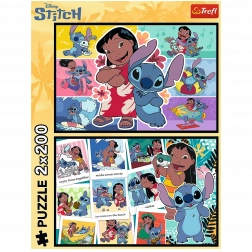Prinašamo vam dvojno veselje s tem kompletom sestavljank z dvema slikama po 200 kosov. Tema so barvne kolaže iz priljubljene risanke Lilo in Stitch, ki bodo poskrbele za zabavo za celo družino.