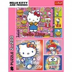Sestavljanka 2x200 Hello Kitty in prijatelji ponuja dve sliki v enem setu, vsaka s 200 kosi, ki bodo zagotovili ure zabave za otroke in odrasle. Ta komplet sestavljank predstavlja barvite kolaže, navdihnjene s priljubljeno risanko Hello Kitty, ki po sestavi dosežejo mere 410x275 mm.