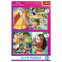 Puzzle 2x70 Disney Princeske Pravljični Dnevi so odlična izbira za vse otroke, ki obožujejo Disney princeske. Vsebuje dve sestavljanki, ki skupaj ponujata dvojno zabavo.