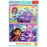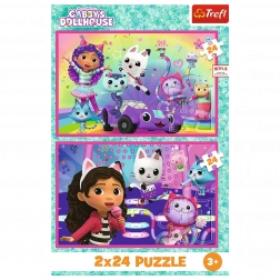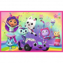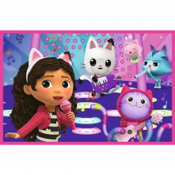 Sestavljanka 2x24 Zabava z Gabby je idealna za vse otroke, ki imajo radi sestavljanje. Vsebuje dva prizora iz priljubljene risanke Mačji domek Gabby, vsak v velikosti 275 x 180 mm.