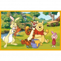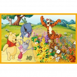 Potopite se v čarobnost Disneyjeve pravljice z sestavljanko Dan na vrtu, ki prikazuje dogodivščine Medvedka Puja in njegovih prijateljev. Vsaka slika meri 275x180 mm in je obogatena z živahnimi barvami ter podrobnostmi.