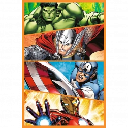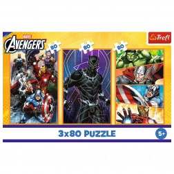 Sestavljanka 3x80 Akcijski dnevi predstavlja osupljive prizore s priljubljenimi superjunaki Avengers, kot so Captain America, Black Panther, Thor, Iron Man in Hulk. Vsaka sestavljanka po sestavi ustvari sliko v dimenzijah 275x180 mm.