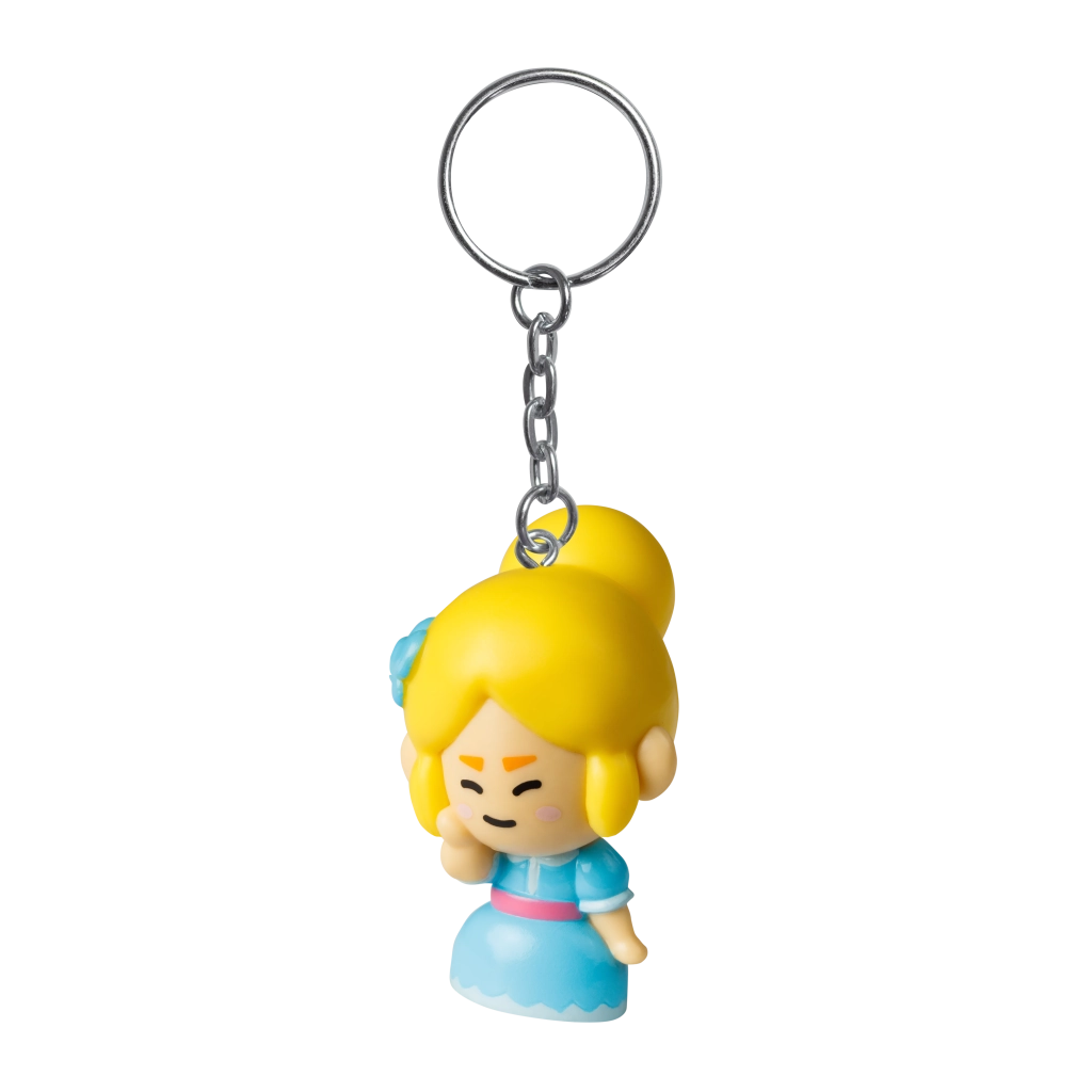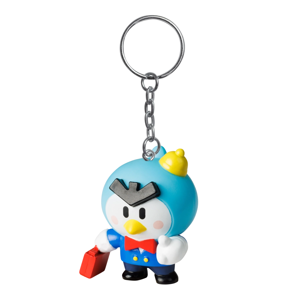 Robusten kovinski obroček s kratko verižico zanesljivo drži na ključih ali zadrgi nahrbtnika. Telo figurice je iz trde plastike, ki prenese vsakodnevno uporabo.